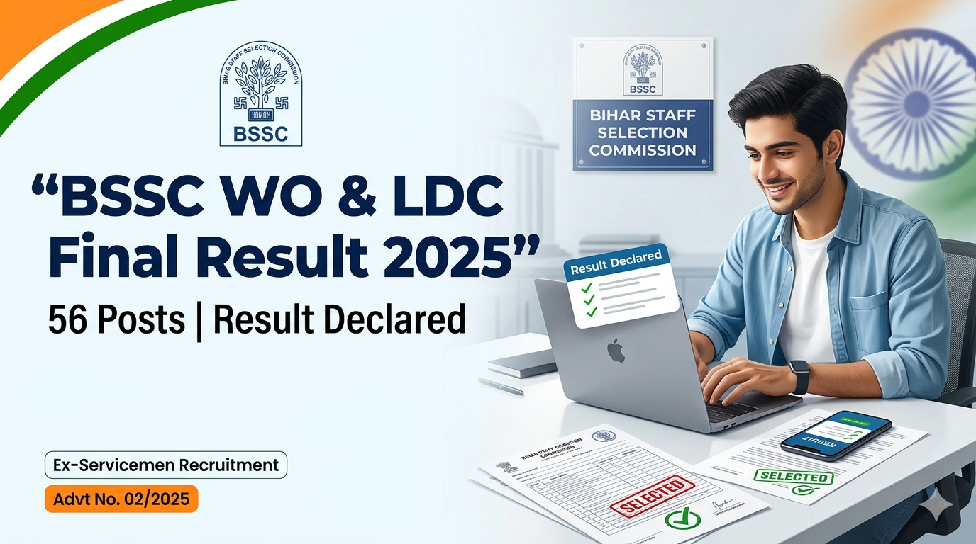 BSSC Welfare Organiser WO & LDC Recruitment 2025 Final Result Short Summary: Bihar Staff Selection Commission (BSSC) has declared the final result for Welfare Organiser (WO) and Lower Division Clerk (LDC) posts. This recruitment drive filled 56 posts reserved only for ex-servicemen candidates. Those who applied online between 25 April 2025 and 21 May 2025 can now check their selection status.