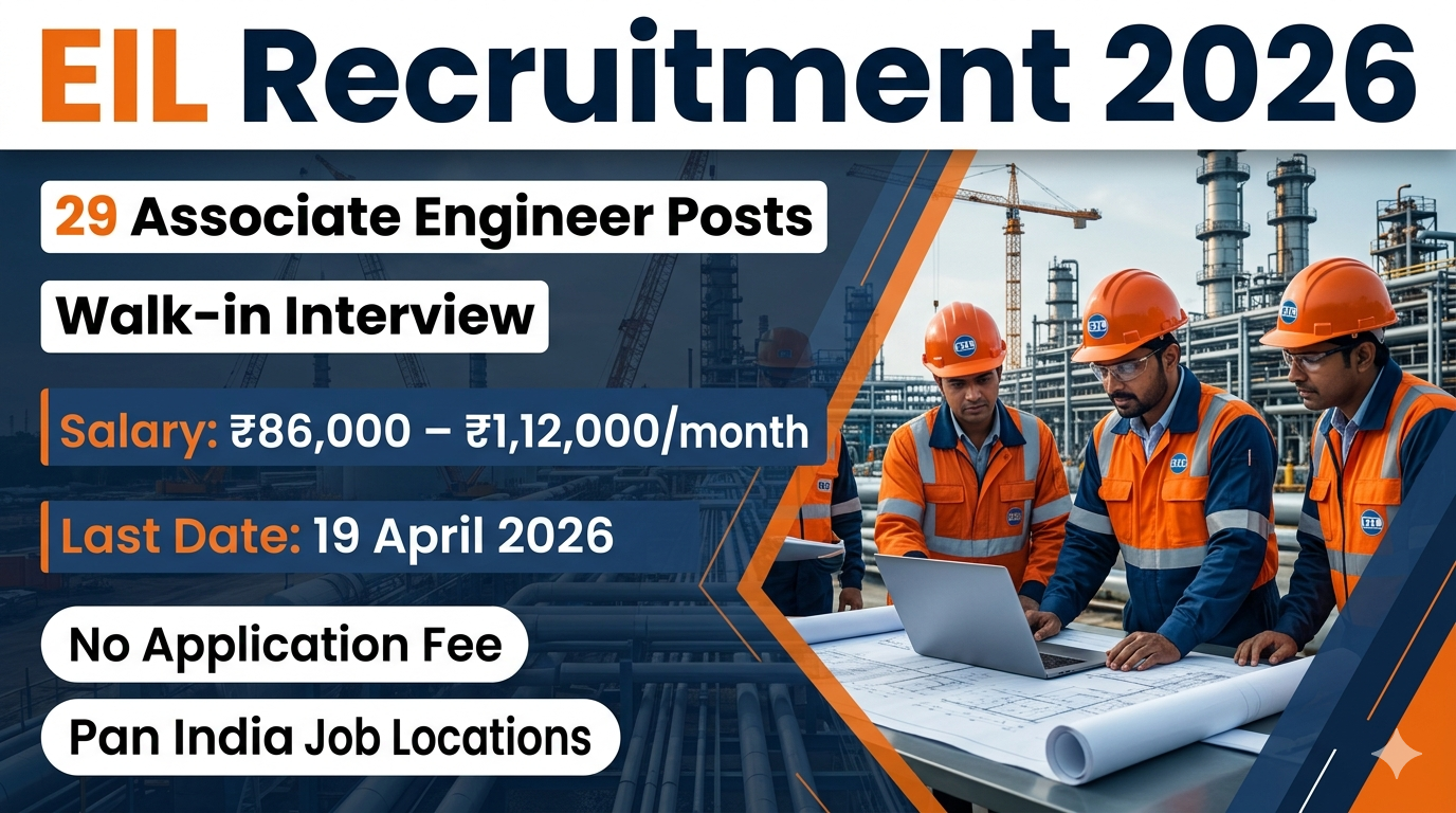 EIL Recruitment 2026:Β Engineers India Limited (EIL), a prestigious Navratna Public Sector Undertaking (PSU), has announced a fantastic career opportunity for experienced engineering professionals. This recruitment drive is specifically looking for dynamic individuals to join on a fixed-term basis for various construction sites across the country, including major projects like the Bina Refinery and Vizag-Raipur Pipeline. If you are an engineer with a passion for excellence and want to be part of Indiaβs growth story, this is your chance to work with a leading engineering consultancy firm.