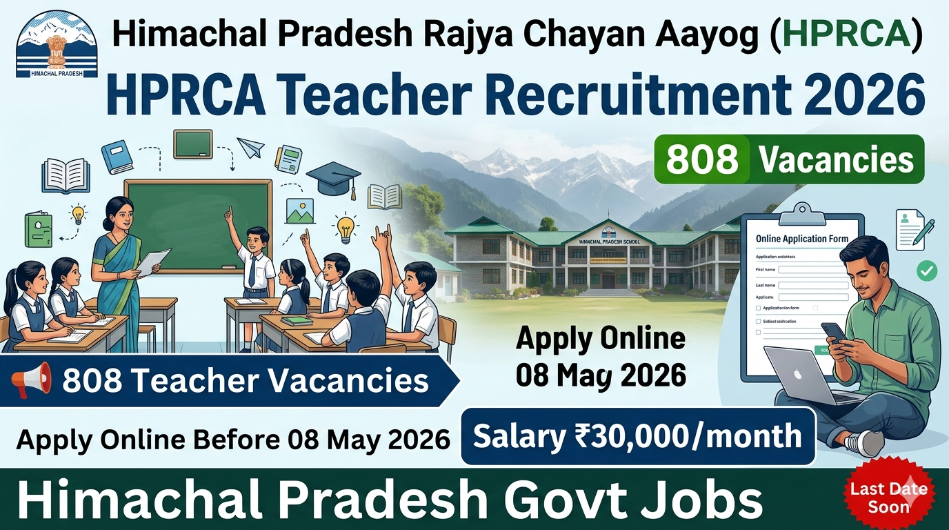 If you are searching for the latest teaching jobs in India, then HPRCA Recruitment 2026 is a great opportunity for you. The Himachal Pradesh Rajya Chayan Aayog has released a new notification to recruit 808 teachers in different subjects. This recruitment is for government schools across Himachal Pradesh under a special scheme.Β Candidates who want to build a career in the education sector can apply online through the official portal. Before applying, it is important to check eligibility, age limit, selection process, and application steps carefully.