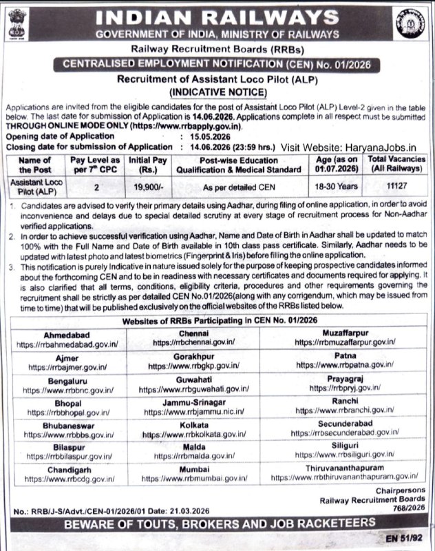 Railway RRB ALP Recruitment 2026: Boards (RRBs) under Ministry of Railways have released a notification for Assistant Loco Pilot (ALP) Recruitment 2026. A total of 11,127 vacancies are available across different railway zones in India. Candidates who have technical qualifications like ITI or Engineering Diploma/Degree can apply online from May 15, 2026 through the official portal.